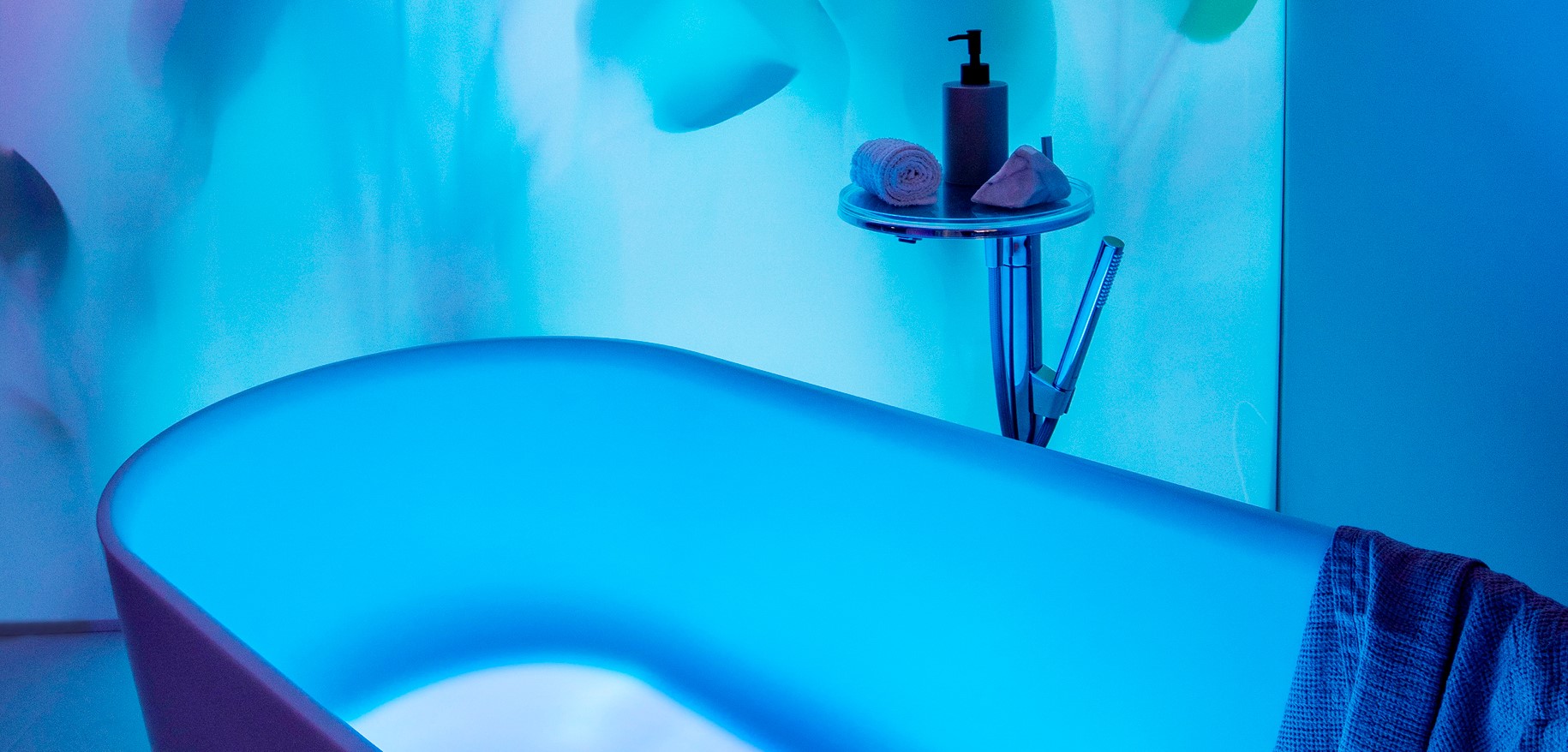 - VAL Luminex bathtub, a ground-breaking creation made with the most cutting-edge technology with high-end LED panel to deliver immersive light and color experiences